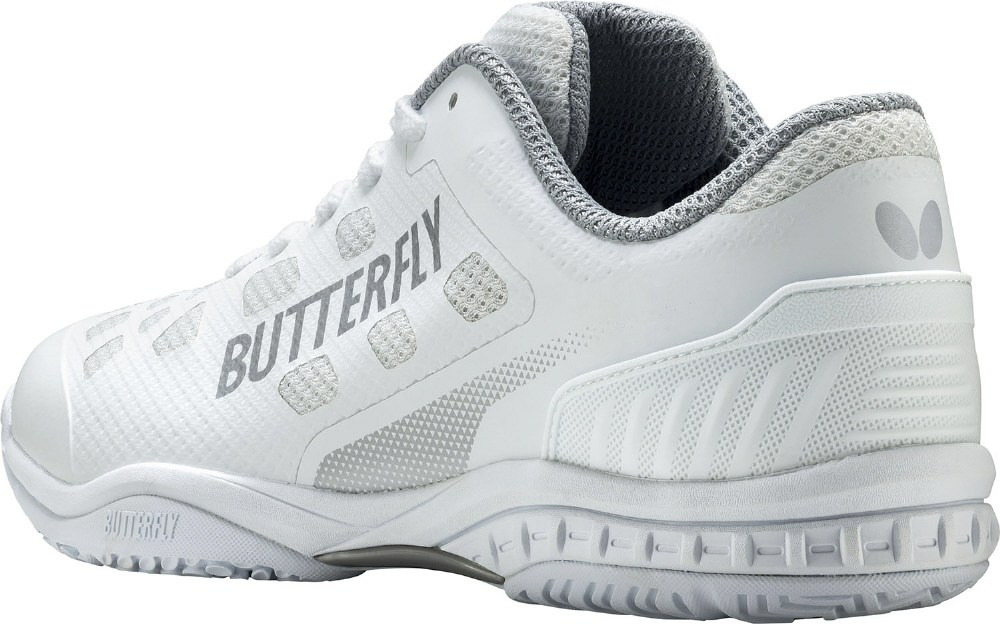 ウィングリップ(Wingrip): 卓球に最適化した高いグリップ力を発揮するゴムを採用。前後左右への正確な動きをサポートします。