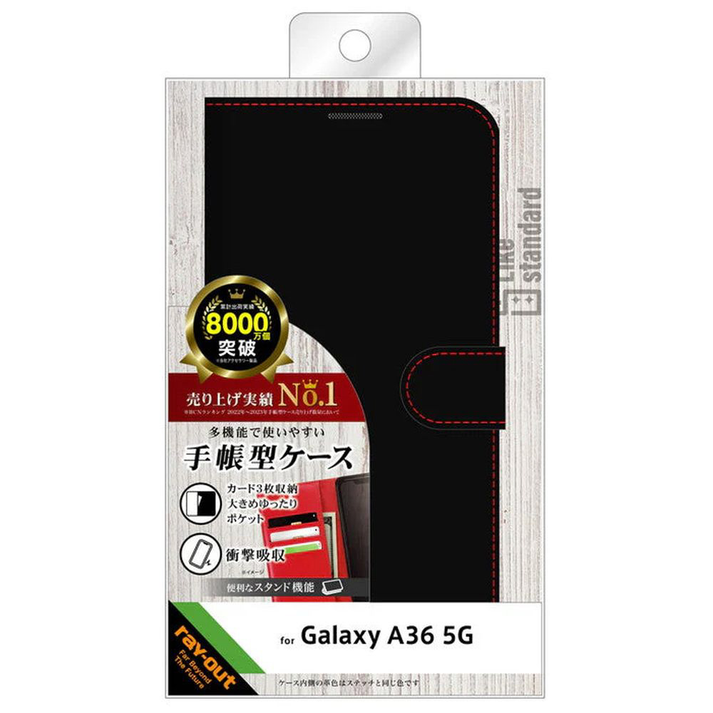 Galaxy A36 5G Like standard 耐衝撃 マグネットベルト シンプル 手帳型レザーケース/ ブラック/レッド RT-GA36ELC1/BR