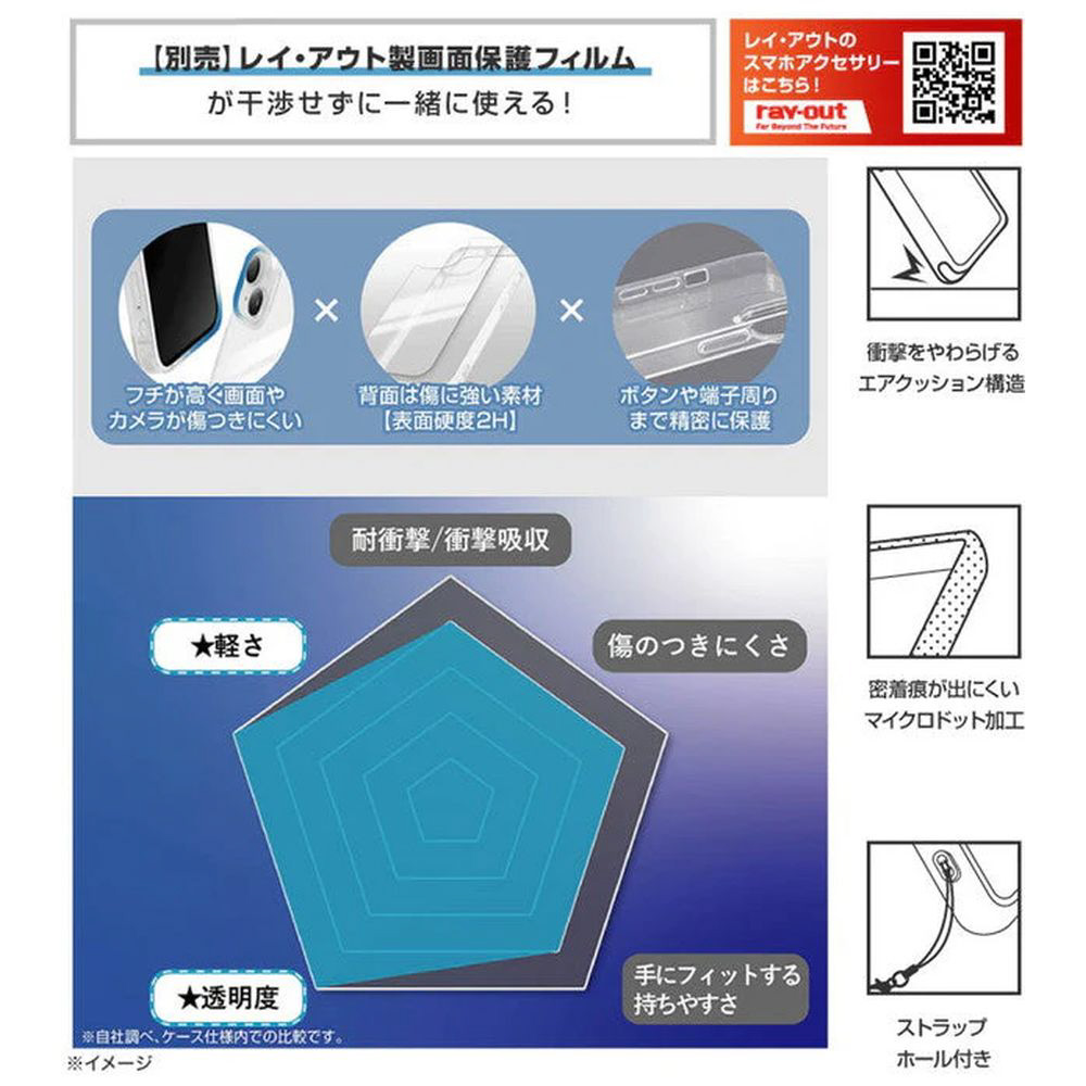 背面は鉛筆硬度2Hで傷が付きにくい。衝撃をやわらげるエアクッション構造。