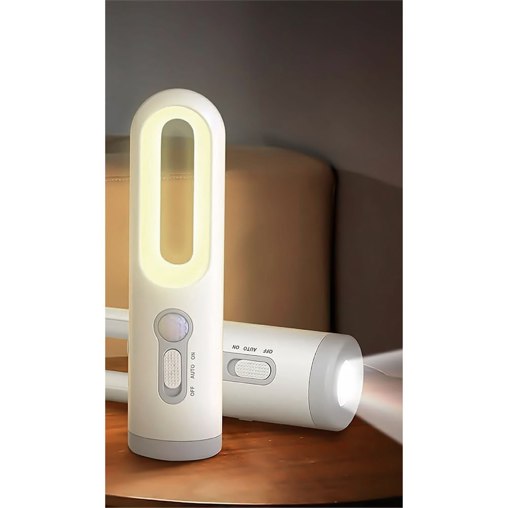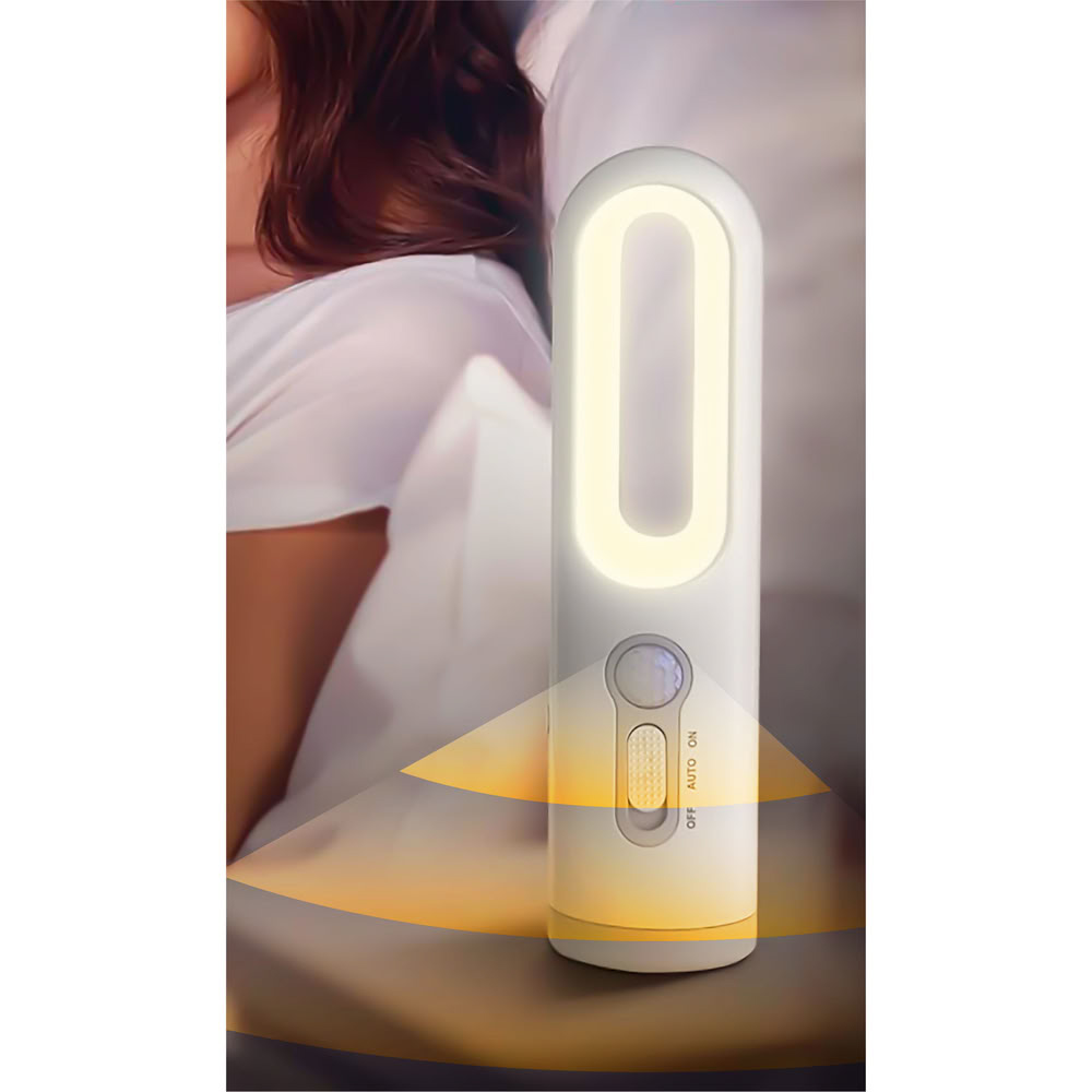 常時点灯モード・人感センサーモード、懐中電灯の3つのモード付ライト。【仕様】300mAhリチウムイオン電池使用。充電時間約2時間。[リングライト]約80lm、[ハンディライト]約100lm[付属品]USBケーブル