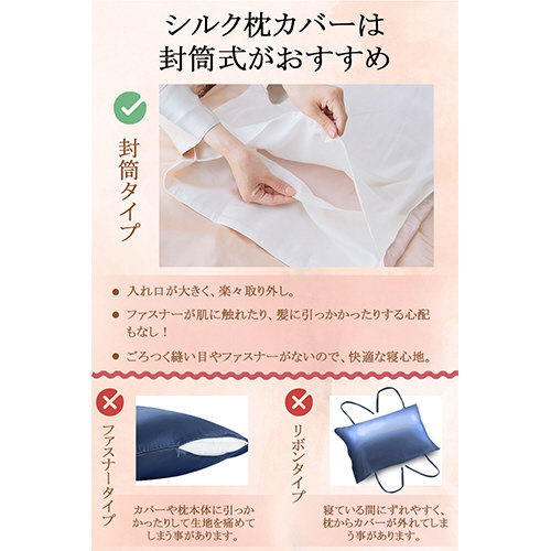 封筒式デザインにより、金具がないためストレスフリー。髪と肌に優しい心地よい触感で、快適な睡眠環境を提供します。