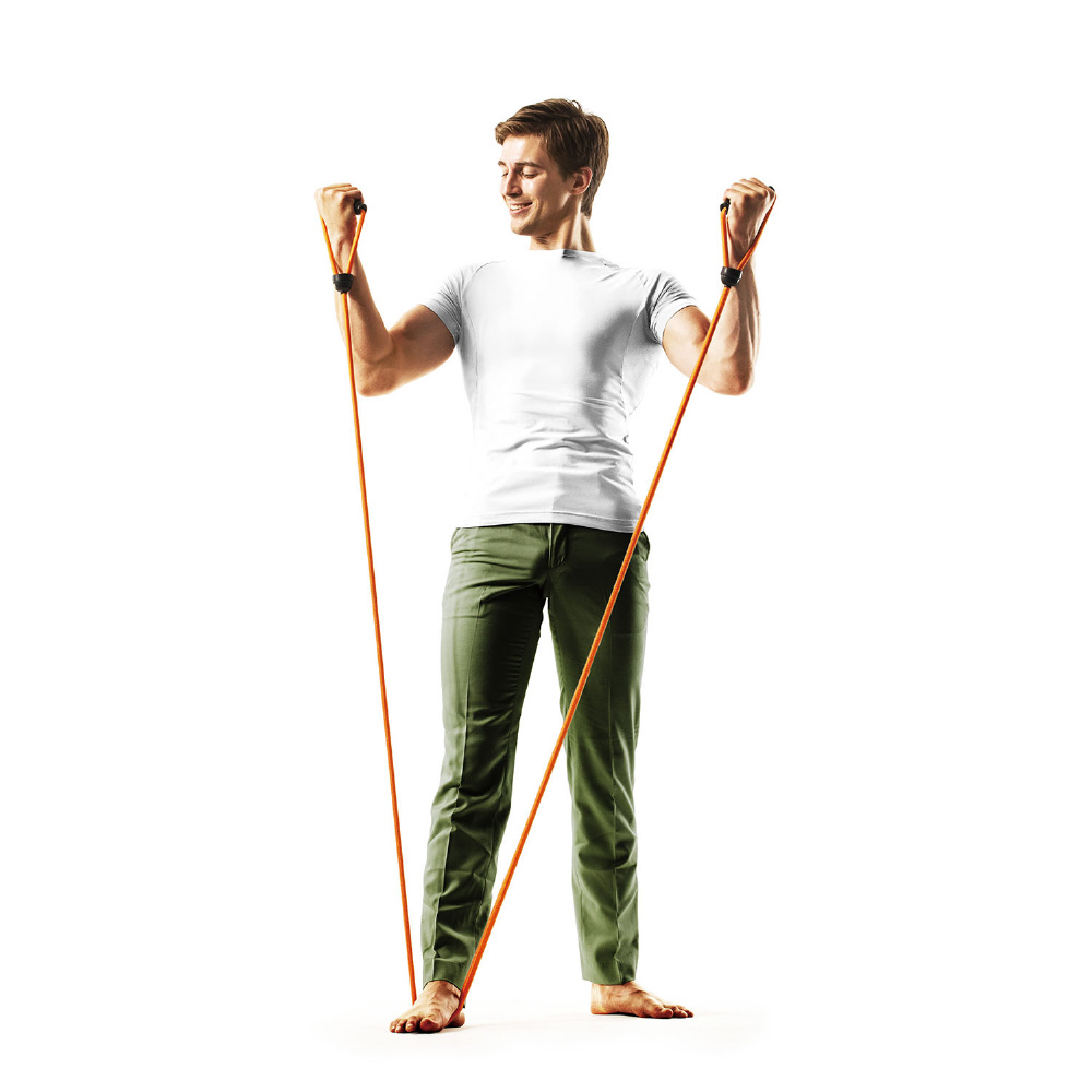 ■ハンドルを握ってストレッチロープを引き伸ばすことにより、上半身及び下半身の筋トレが可能です