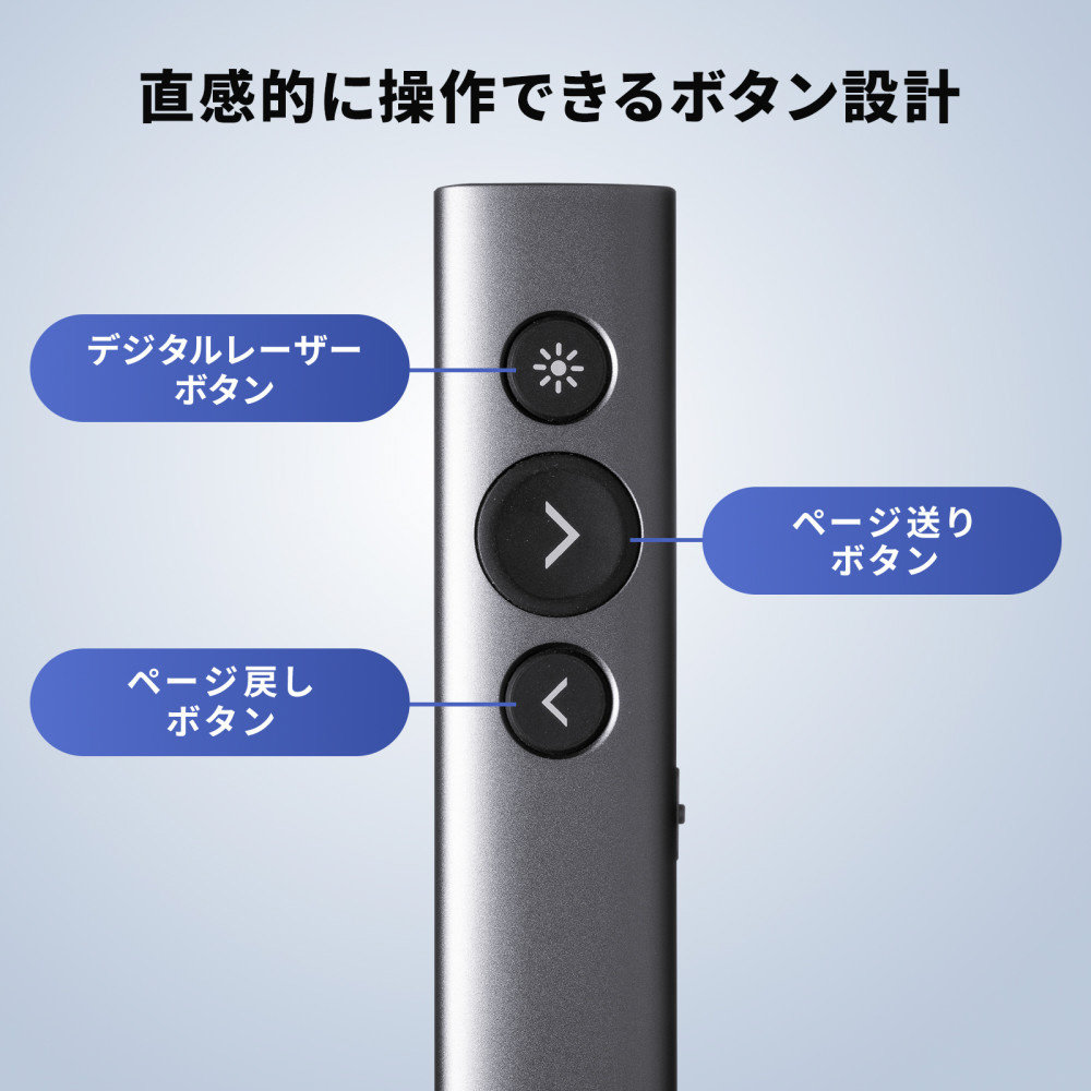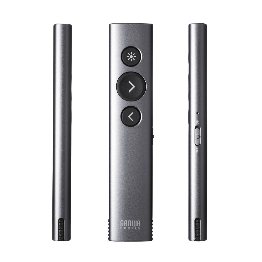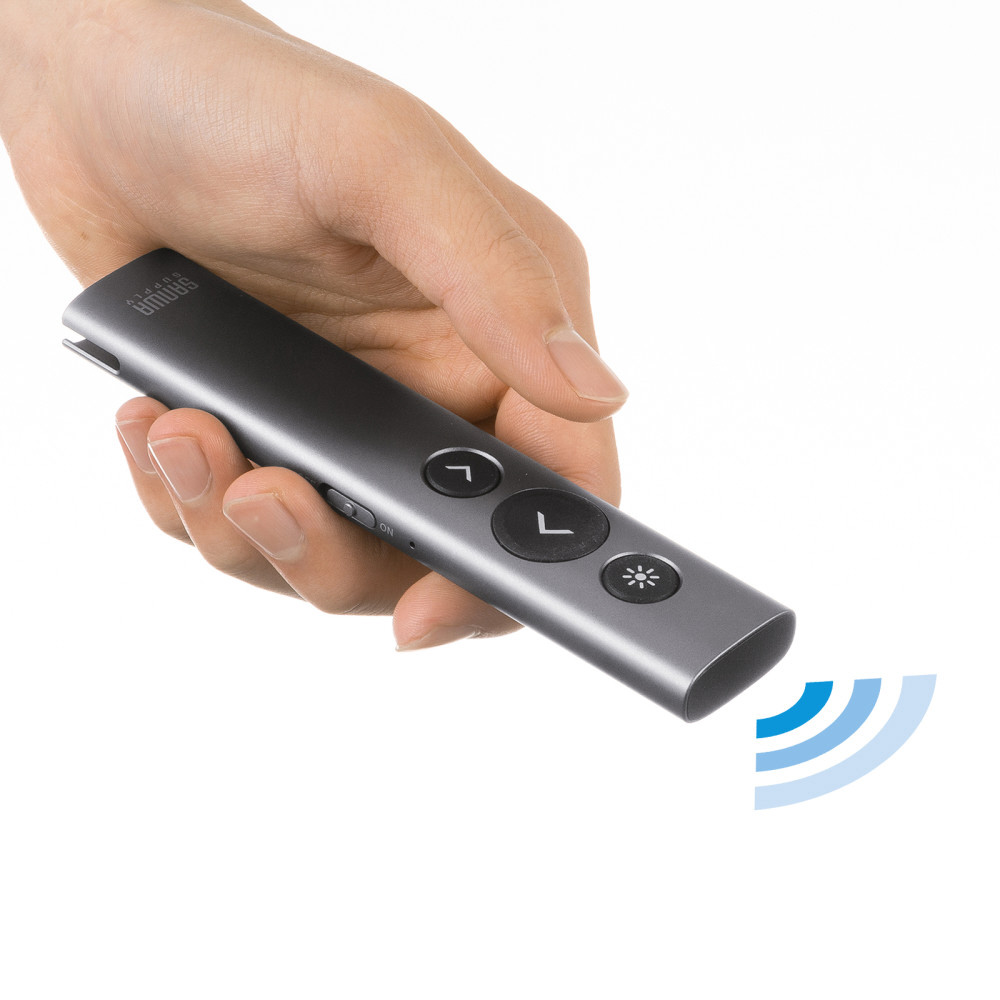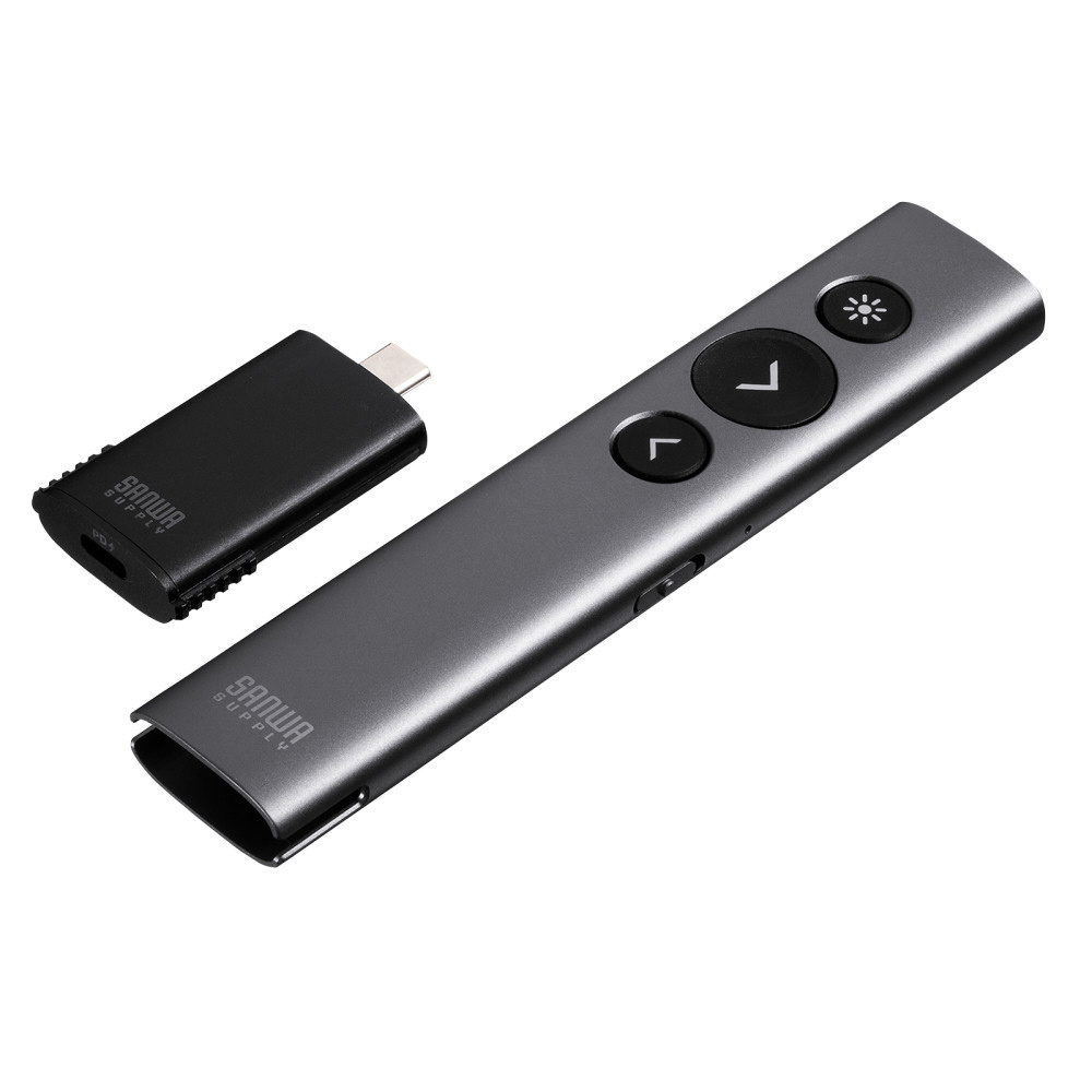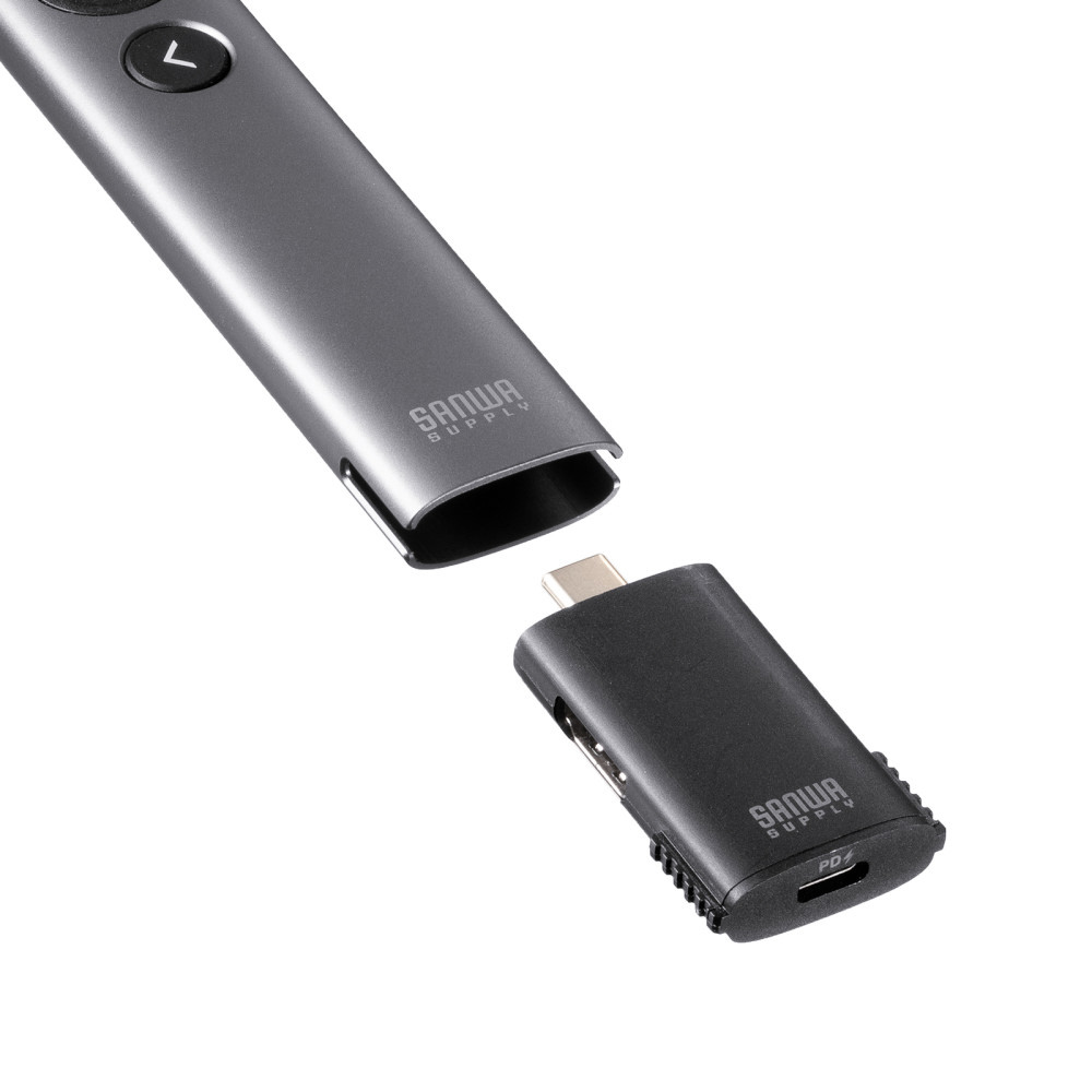 MA-WPR16GM ワイヤレスプレゼンター(2.4GHz・変換アダプタ付き) マウス操作可能 充電式 USB Type-C PD急速充電 HDMI出力ポート付き PowerPoint操作 レシーバー本体収納可能 ガンメタリック