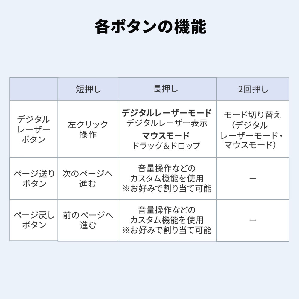 ●PCに接続すると、マウス操作に対応し、マウスカーソルをレーザーポインターのような視認性形状に変更して表示できる「ソフトレーザー機能」を備えています。