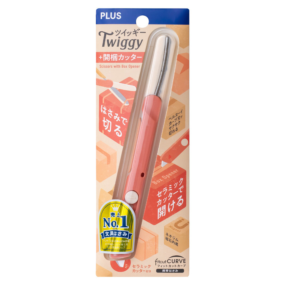 ハサミ フィットカットカーブ ツイッギー+開梱カッター サーモンピンク SC-150P