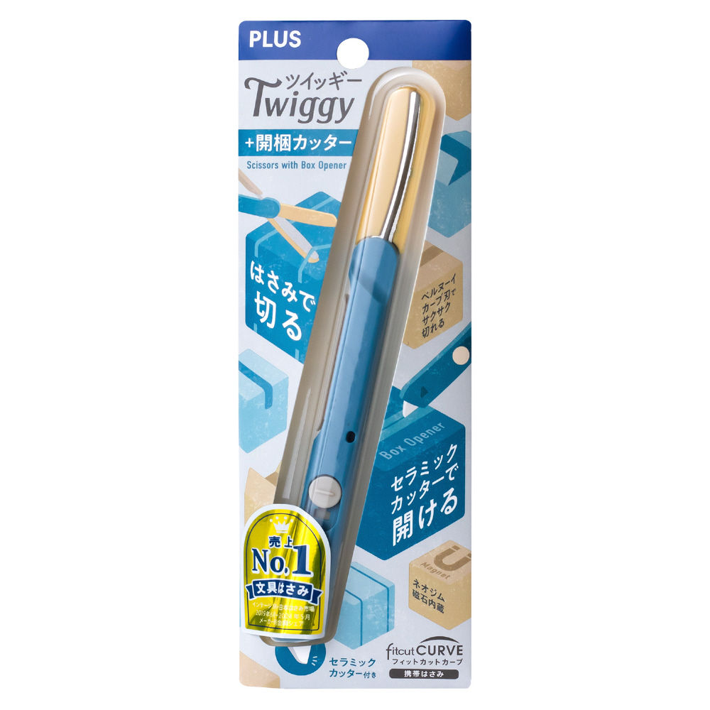 ハサミ フィットカットカーブ ツイッギー+開梱カッター ピーコックブルー SC-150P