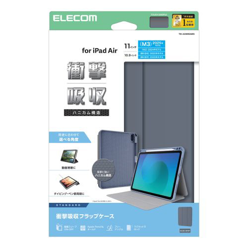 iPad Air ケース 11インチ ( M4 / M3 / M2 ) フラップ カバー 2アングル スタンド オートスリープ機能 軽量 薄型 背面クリア ブルーグレー TB-A25MSABG