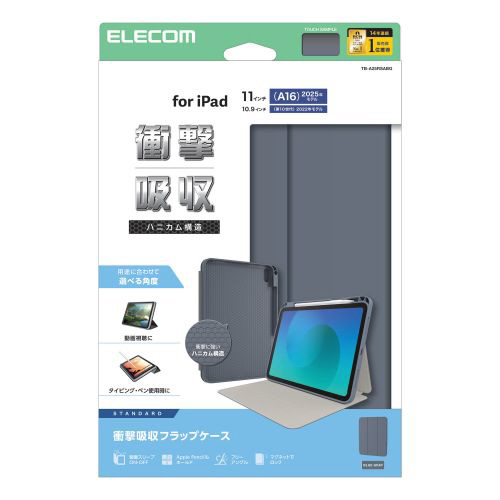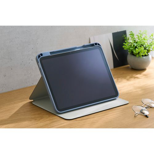 11インチ iPad(A16)、10.9インチ iPad(第10世代)用 フラップケース 衝撃吸収 Pencil収納 スリープ対応 ブルーグレー TB-A25RSABG