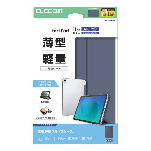 11インチ iPad(A16)、10.9インチ iPad(第10世代)用 フラップケース 薄型軽量 背面クリア 2アングル ブルーグレー TB-A25RWVBG