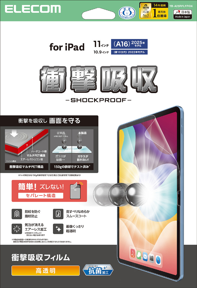 11インチ iPad(A16)、10.9インチ iPad(第10世代)用 フィルム 衝撃吸収 抗菌 高透明 TB-A25RFLFPGN