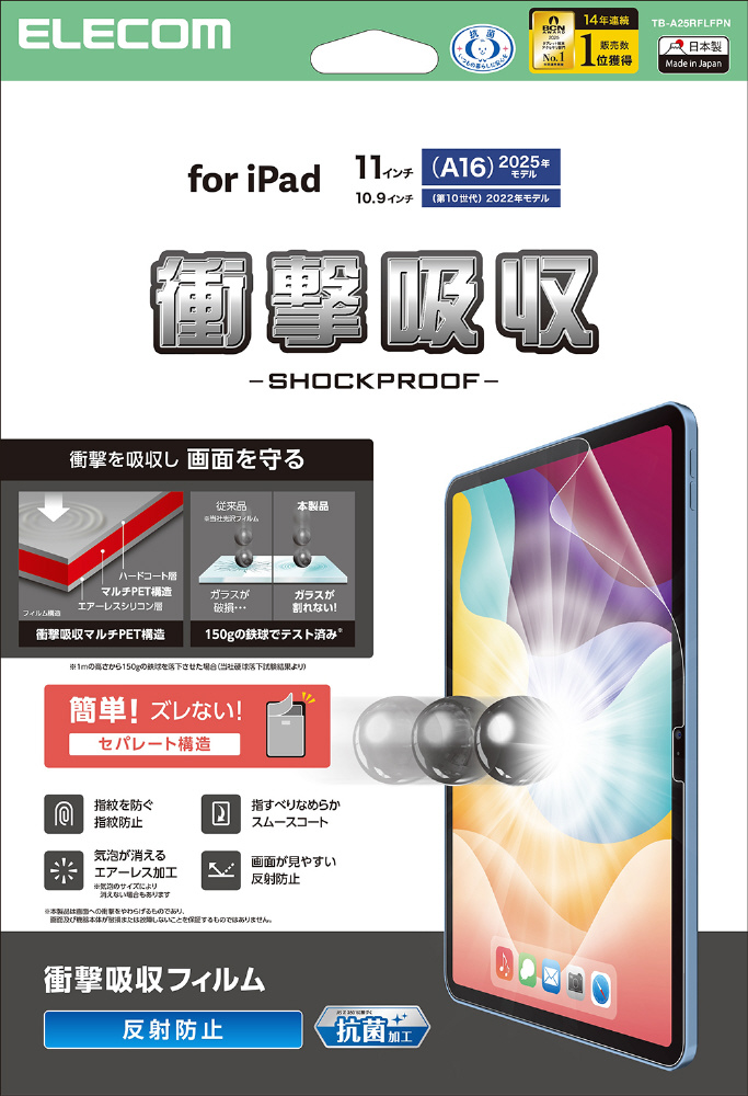 11インチ iPad(A16)、10.9インチ iPad(第10世代)用 フィルム 衝撃吸収 抗菌 反射防止 TB-A25RFLFPN