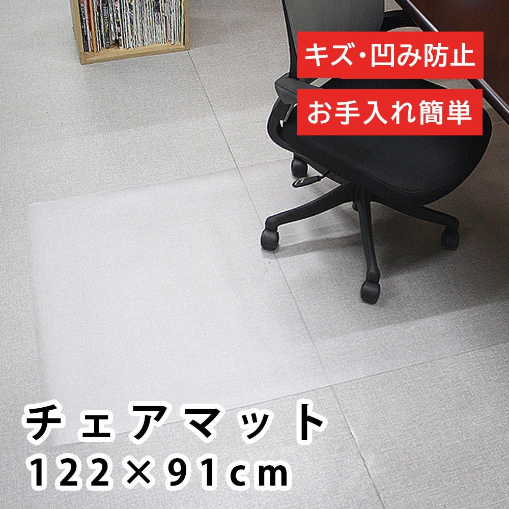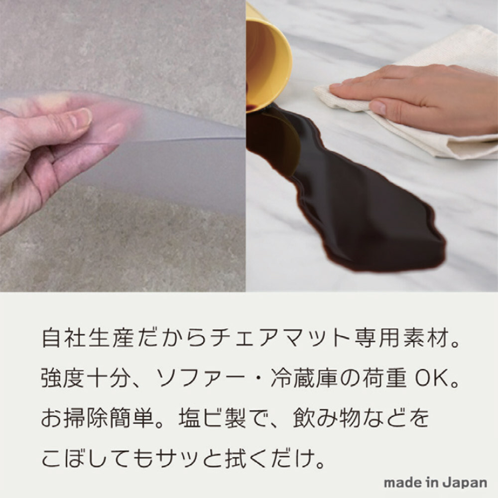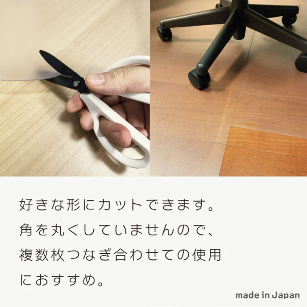 傷つきやすい床をクリアなマットで床の印象を損なわずに守ります。表面はエンボス加工で、キャスターの回転もスムーズ。