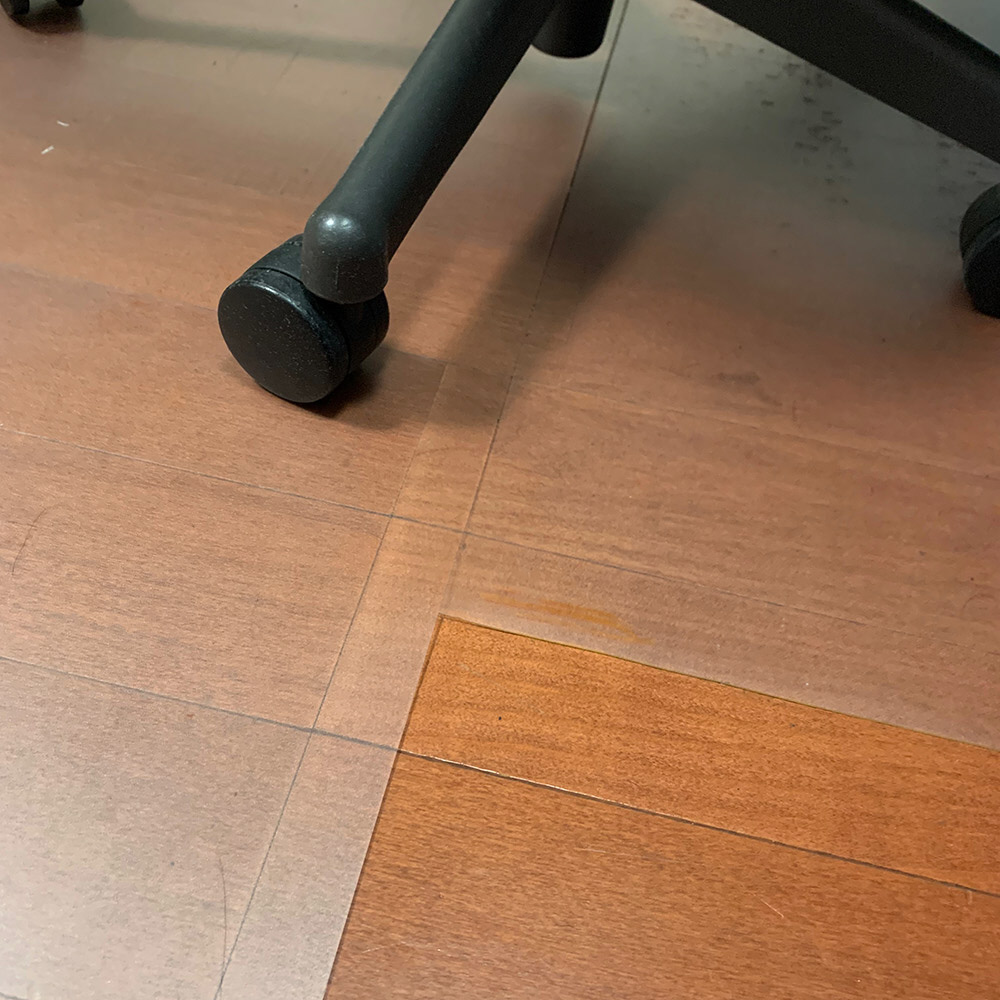 椅子のキャスターキズ防止に。クリアなマットで床の印象を損なわずに傷や汚れから守ります。
