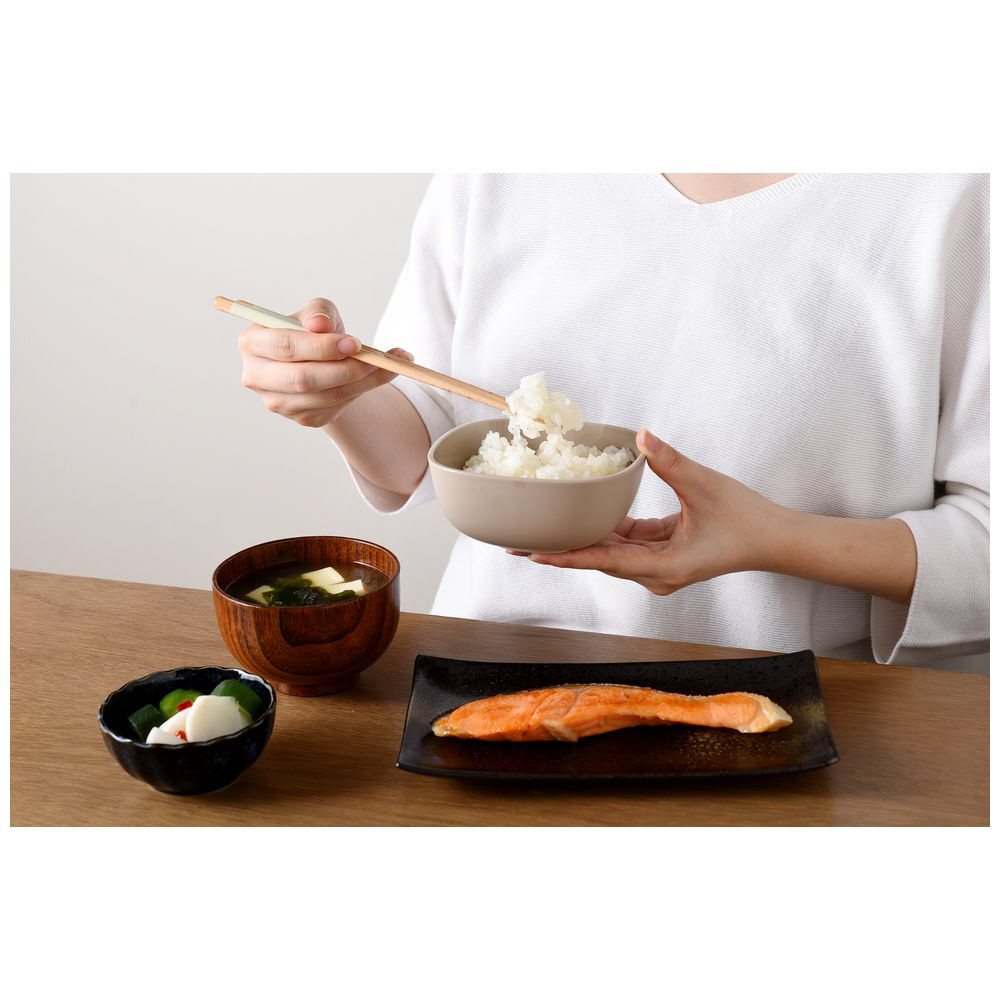 しゃもじにも使われる素材でご飯がこびりつきにくく内側がフラットなので洗いやすい。