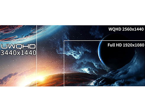 ■UWQHD(3440x1440)解像度はフルHDの約2.4倍の高解像度を実現。水平解像度はフルHDより80%広いため、高い生産性を実現できます。