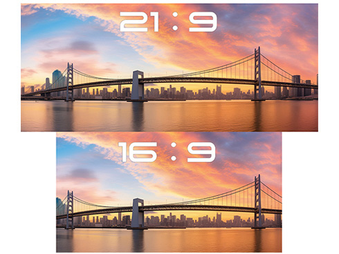 ■34インチの大画面湾曲パネル(R3800)を採用。画面全体が均一に見やすく、鮮やかな色彩と美しい映像を再現します。どの角度から見ても高い画質を実現し、臨場感あふれるコンテンツ体験をお楽しみいただけます。21:9のアスペクト比は、広い画面で複数の資料やウィンドウを同時に表示でき、快適な作業環境をサポートします。