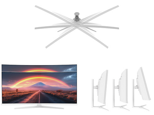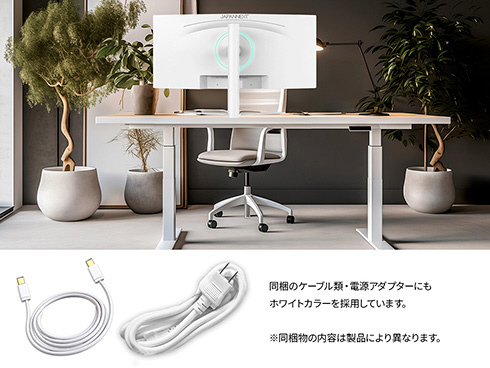■本体カラーにホワイトを採用。モニターベゼルやスタンドも白となっており、爽やかでおしゃれな空間を演出したい場合や、デバイスを白で統一したい場合に最適です。さらに、付属のケーブルや電源アダプターにもホワイトカラーを採用。全体が白基調に統一された部屋や医療機関などでの使用にも最適です。