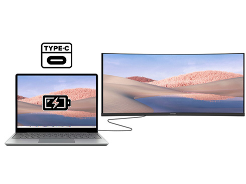■インターフェイスはHDMI 2.0 x1、DisplayPort 1.2 x1、USB-C x1(最大65W給電)を装備し、様々な機器との接続が可能です。USB-C(最大65W給電)は、対応のPCであればUSB-Cケーブル1本でモニターへの映像出力とノートPCへの給電が可能。ケーブル1本でスッキリ接続出来るだけでなく、テレワーク、出社併用の場合などノートPCのACアダプターを持ち運ぶ必要が無くなります。