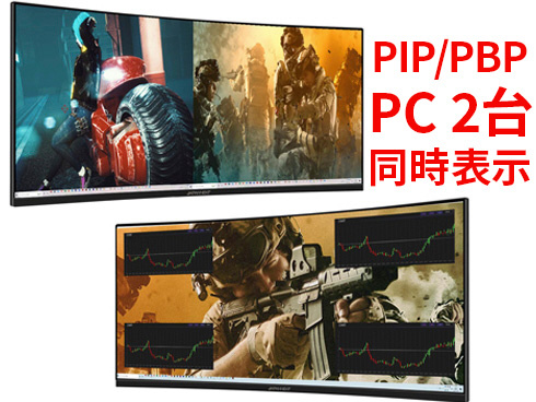 ■複数の入力を同時に表示する「PBP(Picture by Picture)」に対応、PBPモードでは、最大2つの入力映像を左右同時に表示可能。入力の一つを子画面にて表示する「PIP(Picture in Picture)」も可能です。