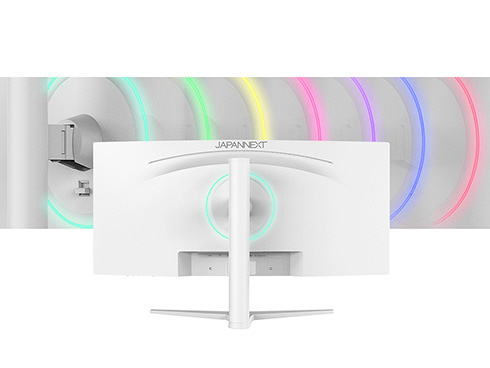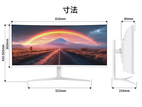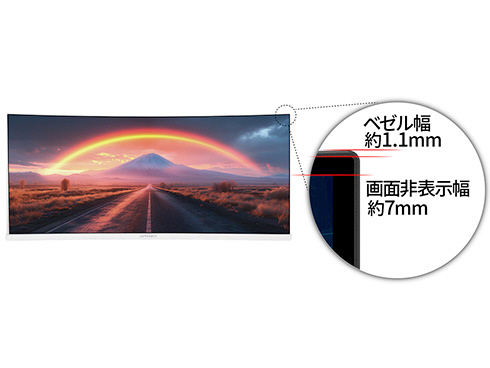 大画面34インチのIPSパネルを搭載し、アスペクト比21:9でUWQHD(3440x1440)解像度に対応した、ホワイトカラーの湾曲ウルトラワイド液晶モニターです。