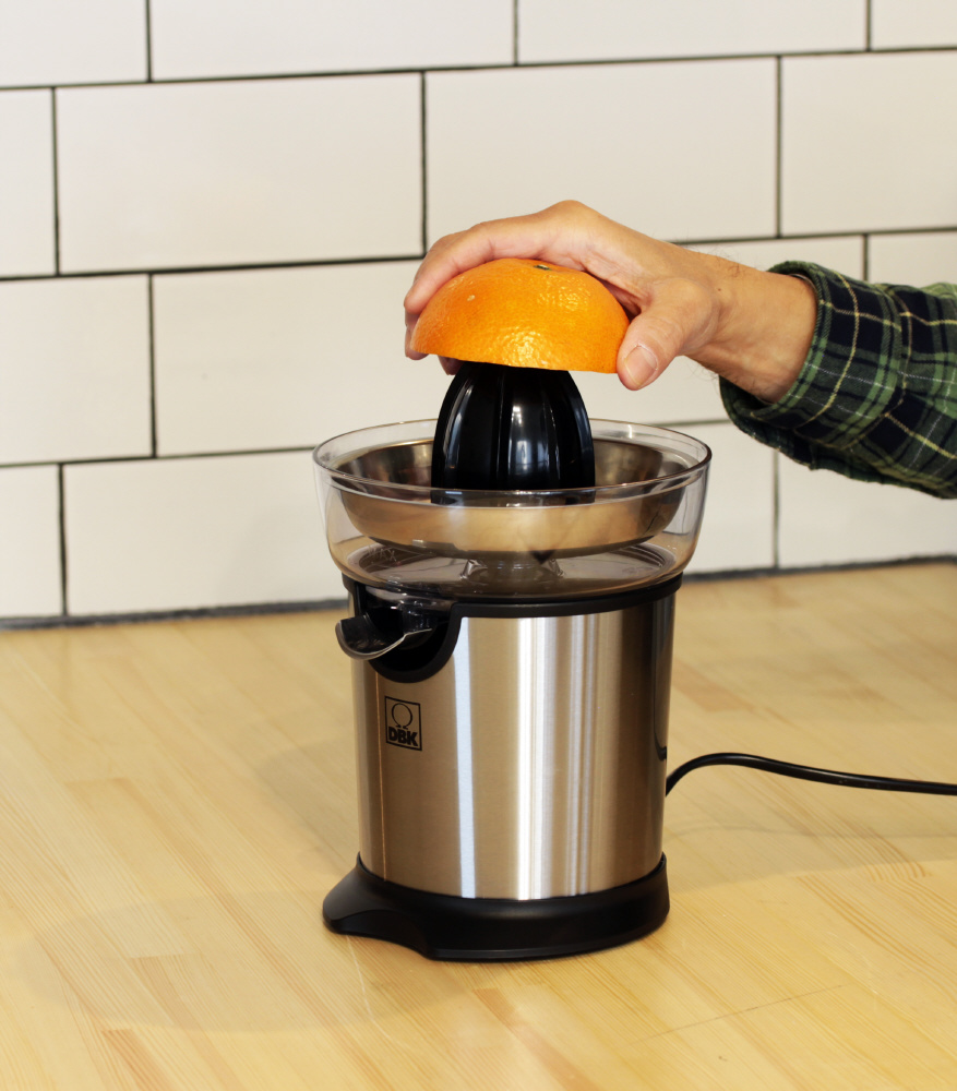 押すと回転する仕組みでいつでも気軽に、 果汁100%のフレッシュジュースが作れます。