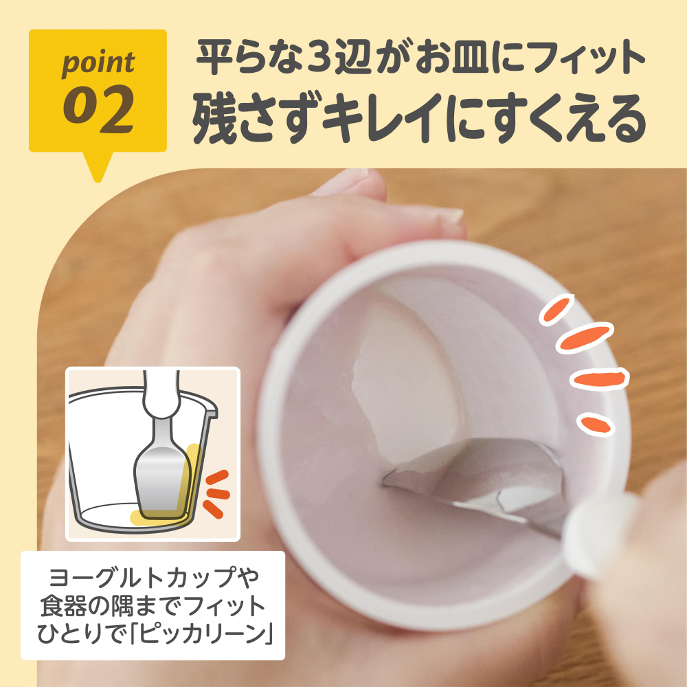 スプーンは平らな先端がお皿の底にフィットするので最後までキレイにすくえます。