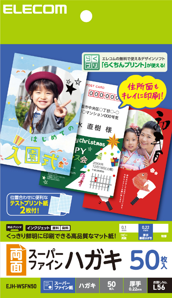 〔インクジェット〕ハガキ 両面スーパーファイン 郵便番号枠入り 厚手 0.22mm [はがきサイズ /50枚] ホワイト EJH-WSFN50