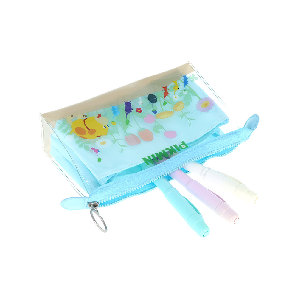 見せたいもの、見せたくないものを分けて収納できるマチ付きクリアポーチ、「クリアポーチ」。柄は、ピクミン 第2弾。デザインは、ライトブルー。