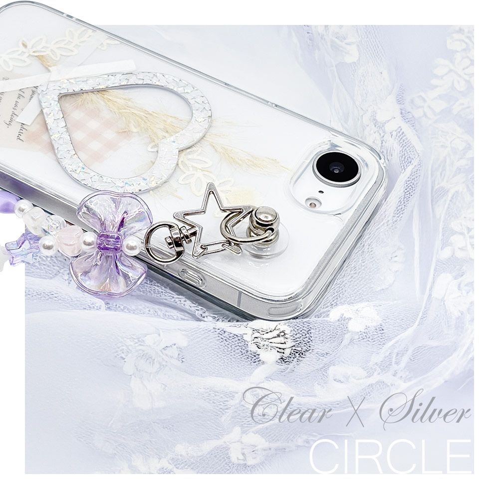 スマートフォン用チャームベース 丸型 クリア×シルバー 2個セット シルバー RCMB03SV