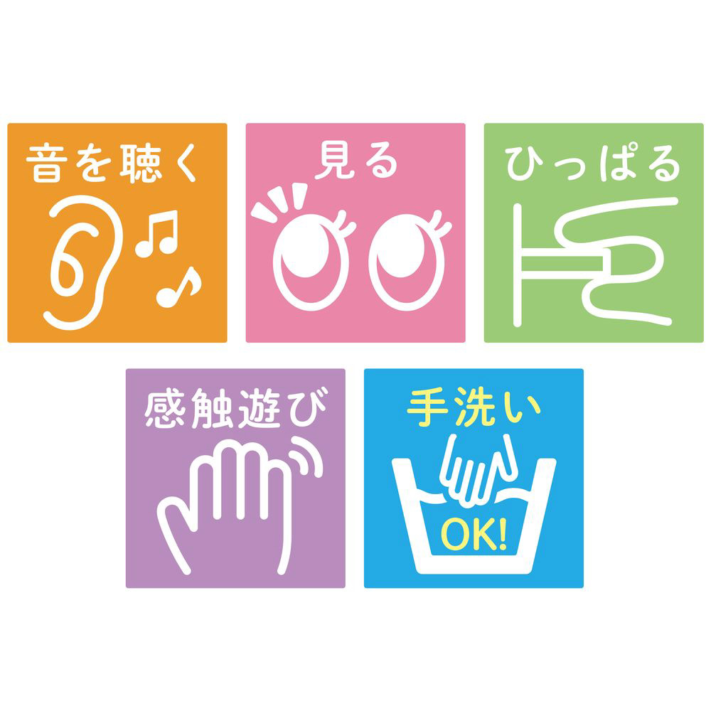 ■リラックマのマスコットを入れられるポケットやめくり遊びなど、指先の発達を促します。