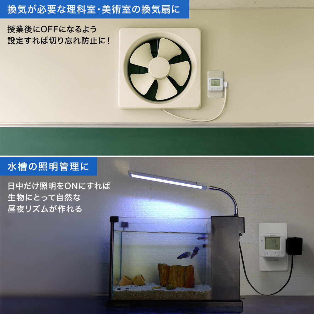 ●曜日ごとにタイマー設定もできるので、お見せの営業時間帯だけONにする機器などにも最適です。