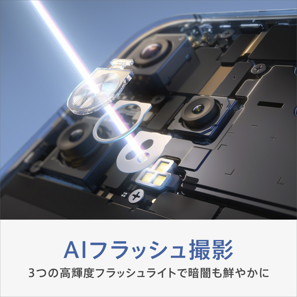 アウトカメラ:[広角] 約5000万画素 (F値1.8/OIS対応)/[望遠] 約5000万画素 (F値2.8/OIS対応)/[超広角] 約800万画素 (F値2.2/画角116°)