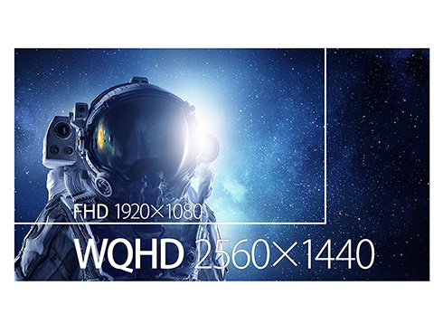 27インチのIPSパネルを搭載し、WQHD(2560x1440)解像度に対応した液晶モニターです。フルHD(1920x1080)より+78%も高精細でデスクワーク使用時には画面を広く、また写真や動画視聴の際はさらに美しく表示します。