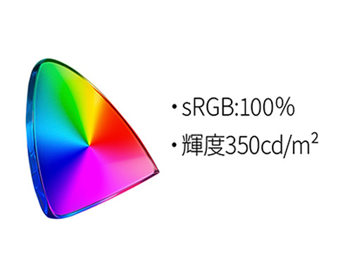■あらゆる角度から見ても色やコントラストの変化がおきにくいIPSパネルを搭載し、広視野角上下左右178°を実現します。最大輝度350cd/m2の液晶パネルは、sRGB:100%の広色域に対応し、動画や写真も色鮮やかに美しく表示します。
