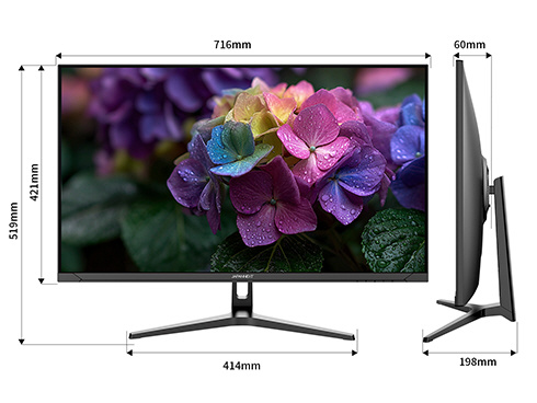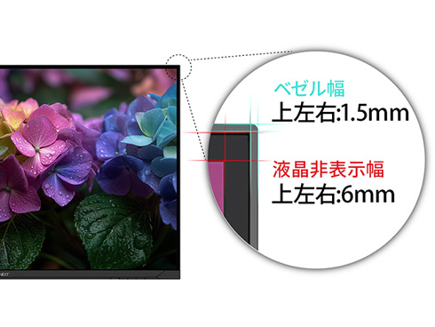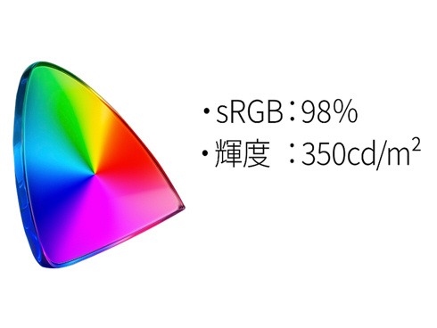 ■高画質VAパネルを採用。3500:1の高コントラスト比は、より黒をくっきりと表現をすることが可能、写真や動画を色鮮やかに映し出します。最大輝度350cd/m2の液晶パネルは、sRGB:98%の広色域に対応し、動画や写真も色鮮やかに美しく表示します。