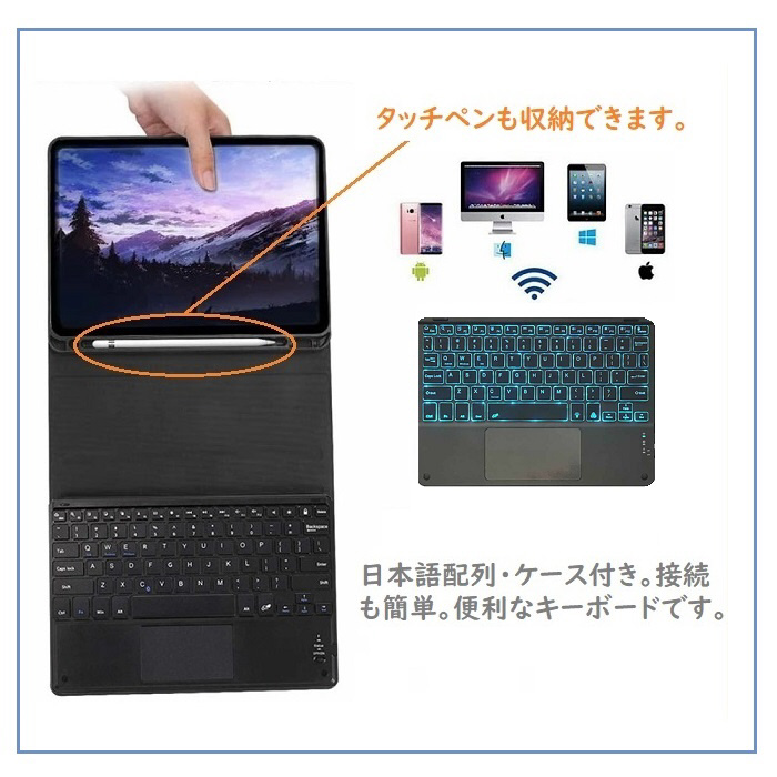 iPad10.9(A16にも対応)ケースとキーボード(QWERTY配列/RGBバックライト付き)がセットになった便利な商品です。