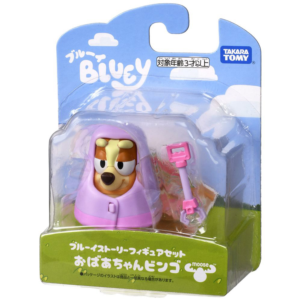 アニメ『Bluey(ブルーイ)』の商品が登場!アニメのエピソードにそった、ビンゴのフィギュア(コート着用)とおもちゃのセットです。