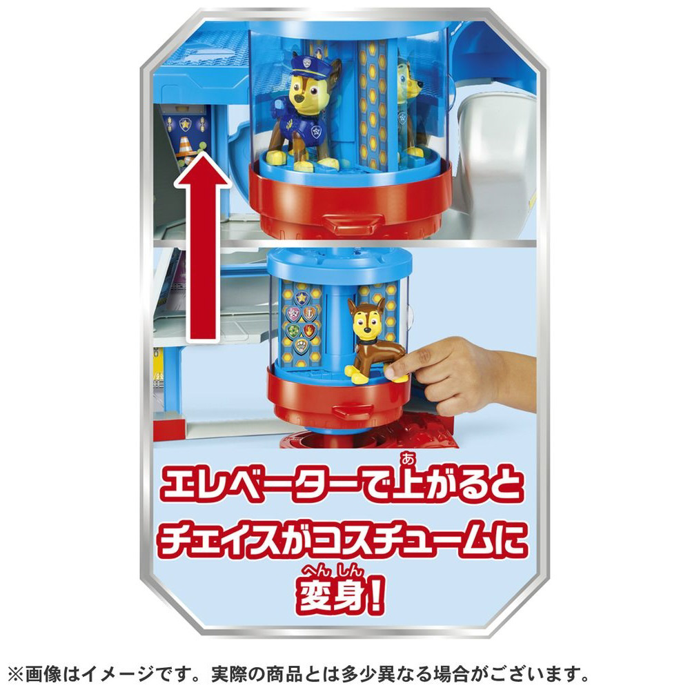 (1)エレベーターにチェイスフィギュアを乗せよう! エレベーターを上げるとコスチュームに変身!