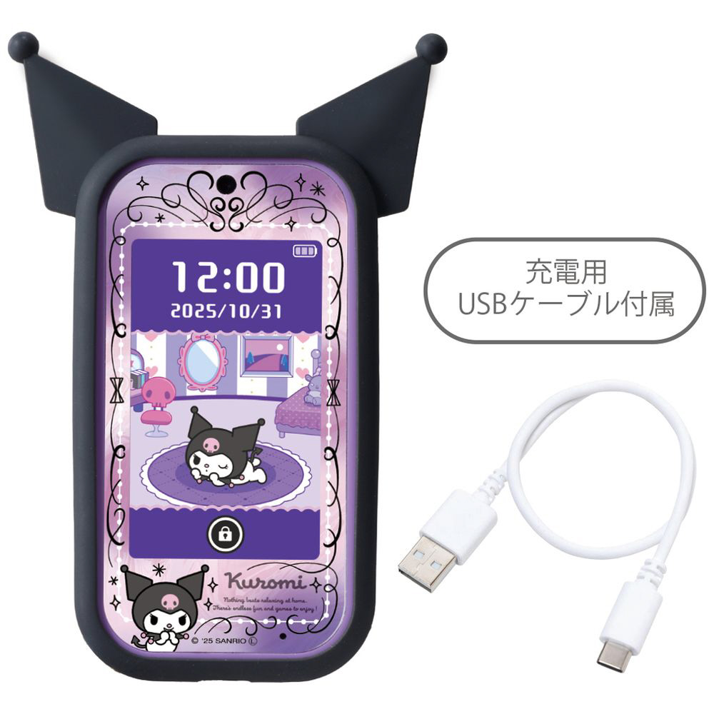 薄くて軽い充電式の本体に、クロミ型のカバーとマジカルチャームがついているよ。