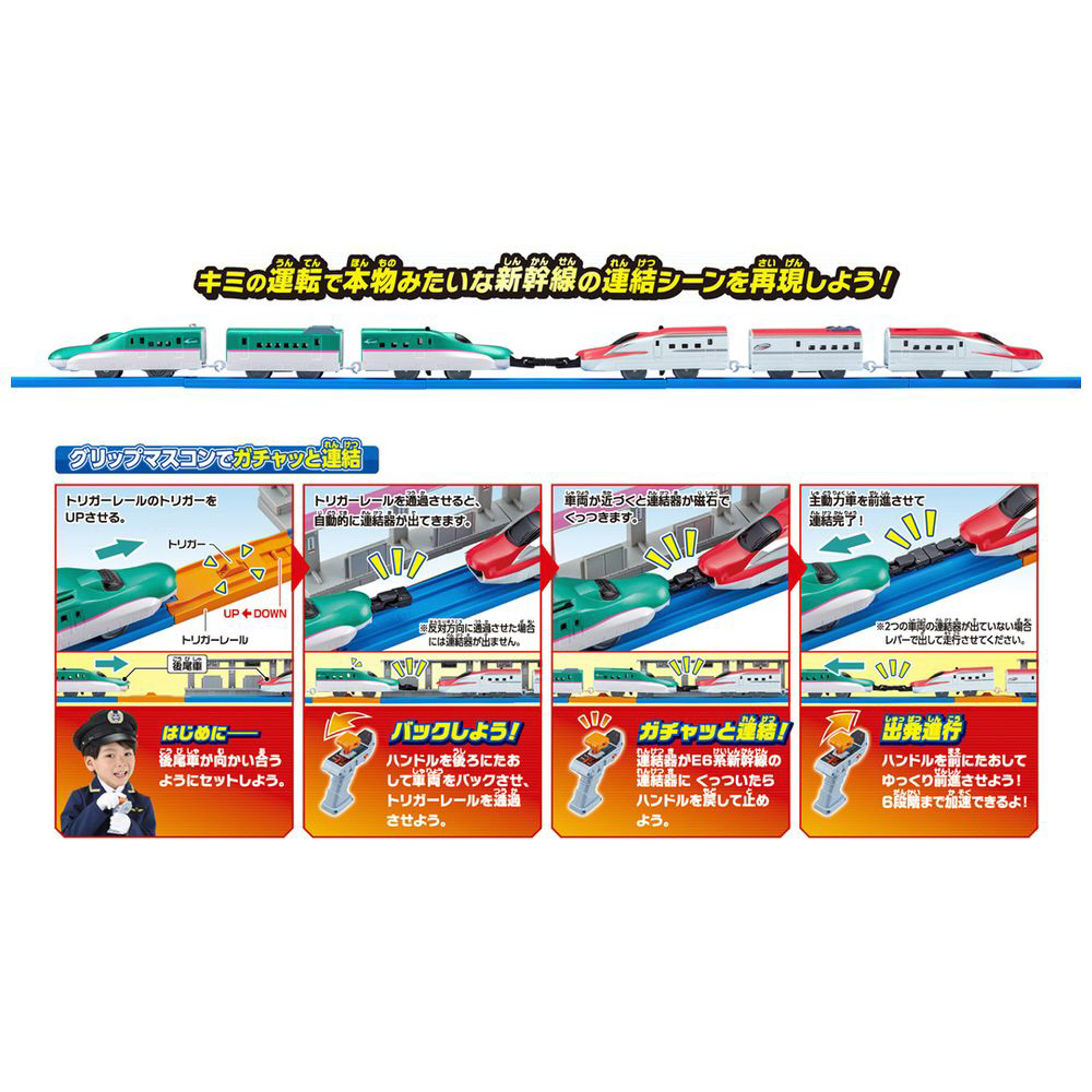 トリガーレールとグリップマスコンでE5系新幹線はやぶさとE6系新幹線こまちとのガチャッと連結を楽しもう!