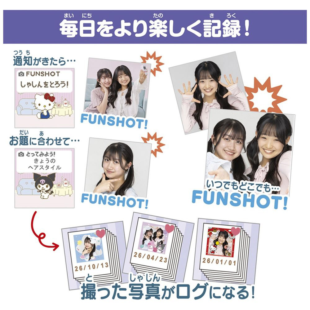 本体は「FUNSHOT ハローキティ」「FUNSHOT シナモロール」「FUNSHOT クロミ」の3種類♪
