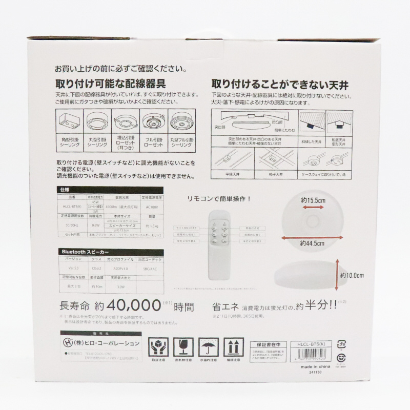 Bluetoothワイヤレススピーカー内蔵LEDシーリングライト10畳用 HLCL-BT5 ホワイト HLCL-BT5
