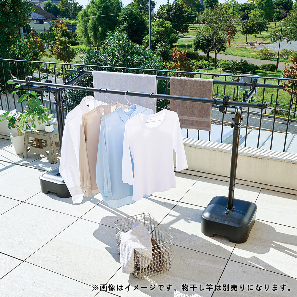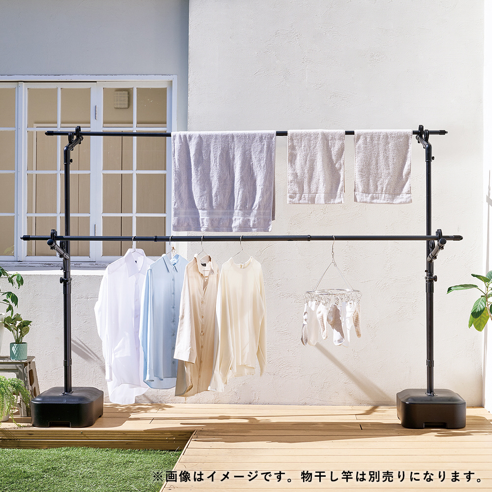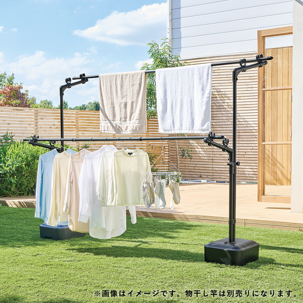 屋外でも使える!おしゃれでスタイリッシュなマットブラックカラーの物干しです。