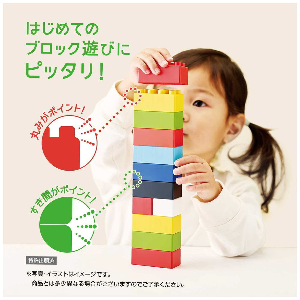 ■1歳半のお子さまの手でも持ちやすい大きなサイズ!角に丸みがあり、組み立てやすくはずしやすいので、はじめてのブロック遊びにぴったり!