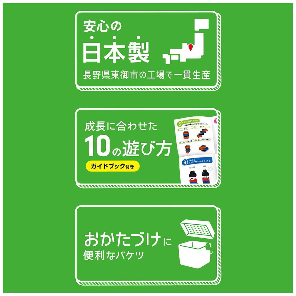 ■基本から応用まで、お子さまの成長に合わせたブロック遊びが楽しめる、10種類の遊び方を記載したガイドブック付き。