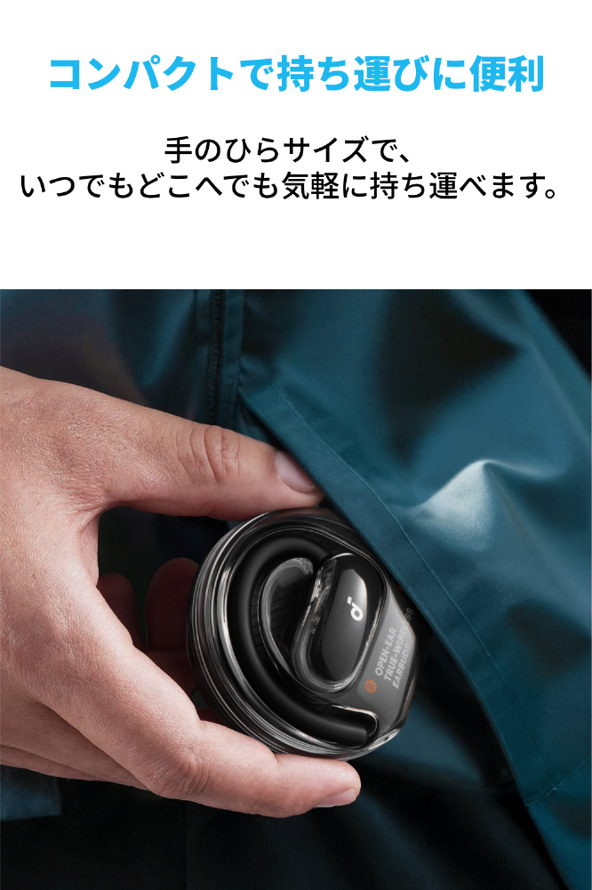 サイズ:約 5.6 x 5.8 x 4.3cm (充電ケースサイズ)、重さ:約10.1g (イヤホン片耳) / 約69g(充電ケース含む)、充電時間:約1.5時間(イヤホン本体) / 約2.5時間(イヤホン本体 + 充電ケース)、防塵・防水規格:IP55 (イヤホン本体のみ)、通信方式:Bluetooth 5.4