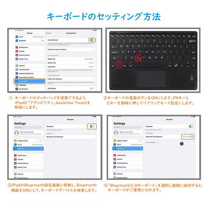 ※トラックパッド機能は、iPadがiOS 13システムにアップグレードされている場合にのみご使用になれます。
