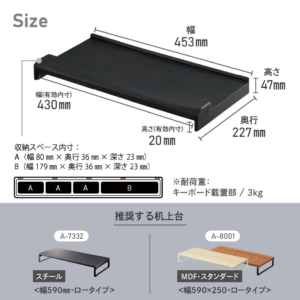[耐荷重]キーボード載置部:3kg(等分布)