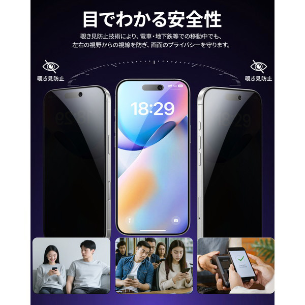 のぞき見防止加工によりプライバシーを守ります。