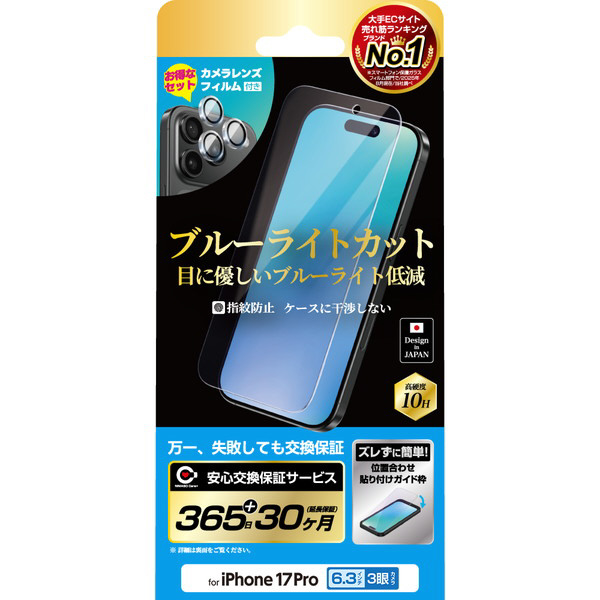 iPhone 17 Pro ガラスフィルム ブルーライトカット レンズフィルムセット NI-G1-17CBL1-S